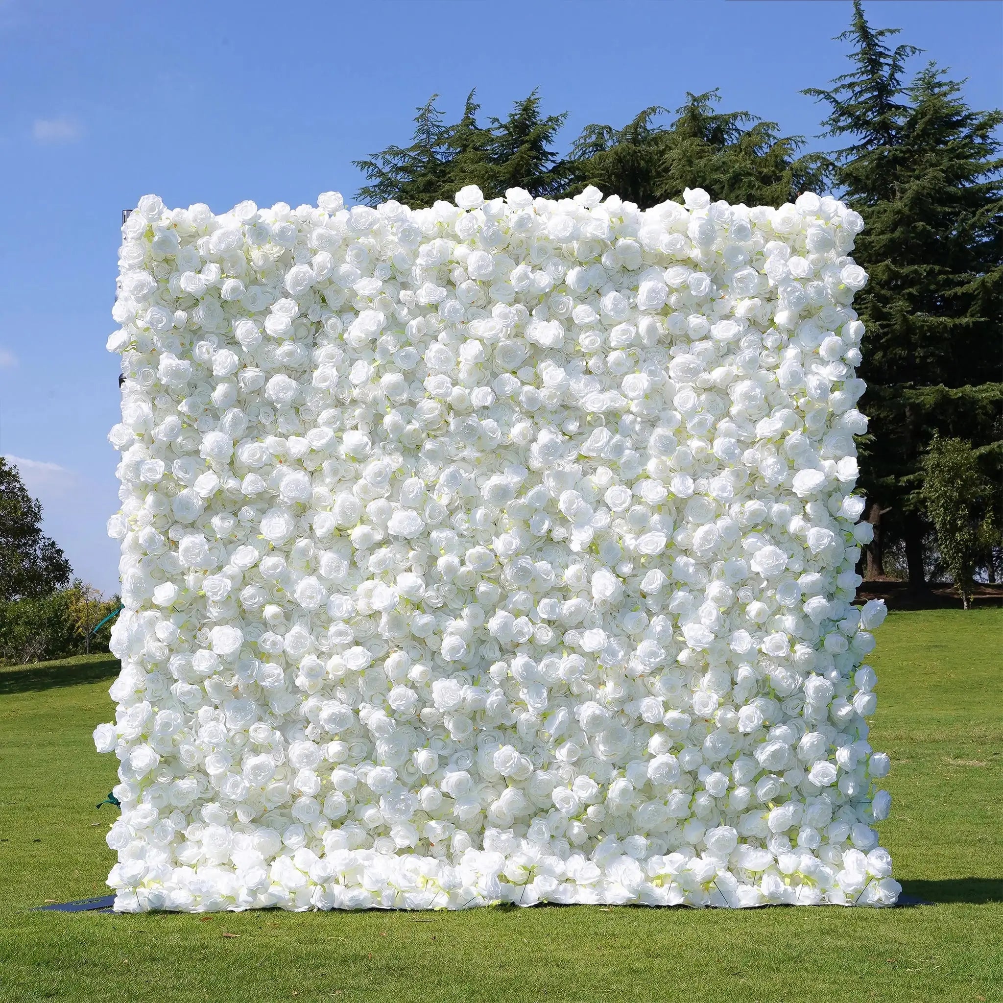 A wedding flower wall made of white roses symbolizes purity, sincerity, and eternal love. White roses represent the fresh and pure feelings between the couple, as well as their deep respect and commitment to each other. This artificial flower wall not only signifies the hope and happiness of embarking on a new life together but also conveys loyalty and unconditional love within marriage. It adds an air of elegance and harmony to the wedding, allowing every guest to feel the pure, peaceful love and witness the eternal bond between two hearts. Perfect as a wall wedding backdrop, this artificial flower wall backdrop offers timeless beauty for your special day.